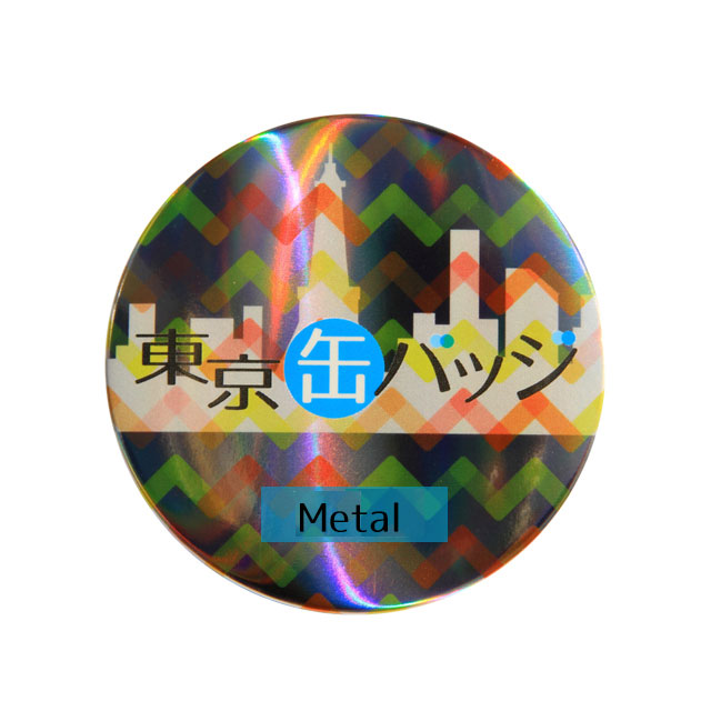 オーロラ(レインボー)タイプの特殊紙を使ったオリジナル缶バッジを作成します。光をよく反射するのでキラキラと輝いて見えます。